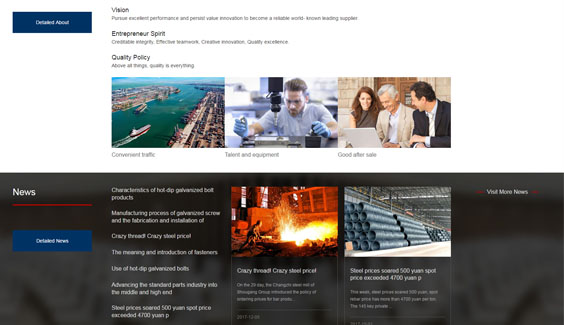 負(fù)責(zé)邯鄲市倚道金屬制品有限公司網(wǎng)站建設(shè)的全體服務(wù),包括:網(wǎng)站設(shè)計、制作開發(fā)、域名空間等網(wǎng)站建設(shè)服務(wù)。因網(wǎng)站是做外貿(mào),故網(wǎng)站語言為英文,網(wǎng)站建設(shè)特點(diǎn)也也參考?xì)W美風(fēng)格進(jìn)行設(shè)計制作,全站采用div+css構(gòu)架網(wǎng)站結(jié)構(gòu),并對于各個細(xì)節(jié)做了詳細(xì)優(yōu)化,使代碼更精簡,為企業(yè)后期進(jìn)行網(wǎng)絡(luò)營銷做好前提基礎(chǔ)。