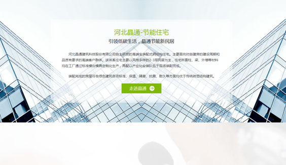 河北晶通建筑科技股份有限公司是一家建筑科技型上市企業(yè),創(chuàng)辦于2013年12月16日,地處邯鄲市魏縣經(jīng)濟(jì)開發(fā)區(qū)創(chuàng)業(yè)大街11號(hào),公司擁有鋼結(jié)構(gòu)工程專業(yè)承包三級(jí)資質(zhì)和建筑工程施工總承包三級(jí)資質(zhì)。公司經(jīng)營(yíng)范圍涵蓋“住宅工業(yè)化技術(shù)及產(chǎn)品的研究開發(fā)、模塊化自保溫墻板、鋼結(jié)構(gòu)工程、輕鋼建筑系統(tǒng)的研發(fā)、設(shè)計(jì)、安裝、技術(shù)咨詢與售后服務(wù)”等方面。采用國(guó)際先進(jìn)的輕鋼結(jié)構(gòu)生產(chǎn)體系和獨(dú)創(chuàng)的預(yù)制模塊化可裝配式自保溫外墻板體系,致力于全裝配式低層鋼結(jié)構(gòu)房屋、鋼結(jié)構(gòu)民用住宅等永久性建筑。其中,模塊化預(yù)制房屋建筑體系可以實(shí)現(xiàn)95%以上工廠預(yù)制,符合節(jié)能、環(huán)保、抗震、低碳的新型房屋建設(shè)理念。