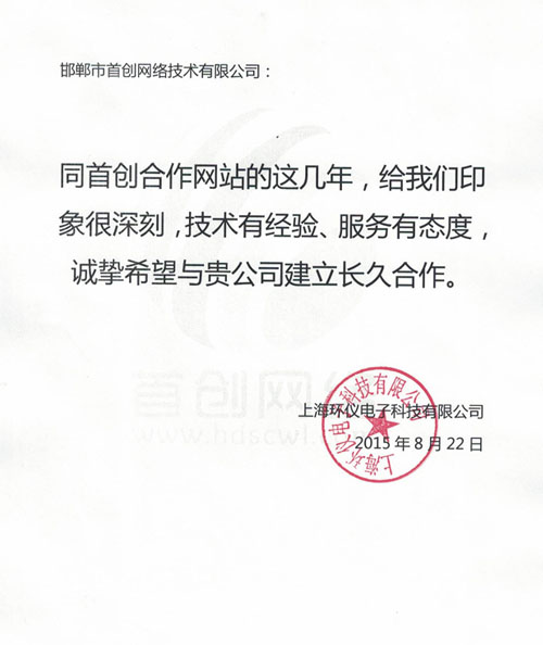 上海環(huán)儀電子科技有限公司對(duì)我公司評(píng)價(jià)