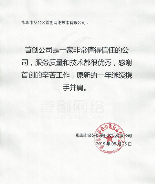 邯鄲市朵妍怡美化妝品有限公司對(duì)我公司評(píng)價(jià)